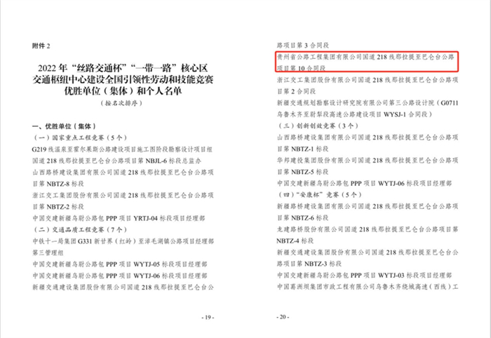获2022年“丝路交通杯”“一带一路”全国引领性劳动和技术竞赛优胜单位