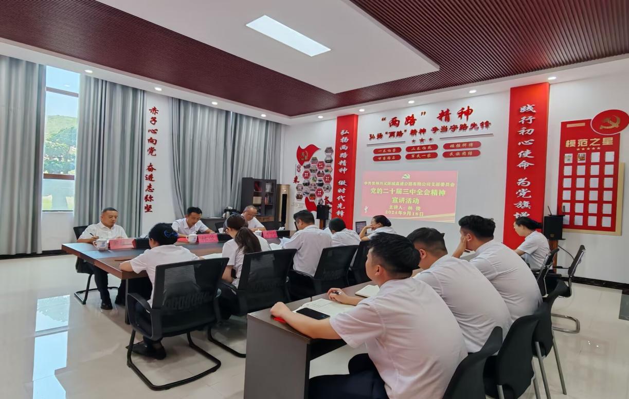 兴义环高公司党支部实时召开支委会对全会精神进行集中学习,并研究安排支部学习宣传贯彻事情;通过党员大会、主题党日运动组织全体党员深入学习,推动党的二十届三中全会精神学习贯彻走深走实。