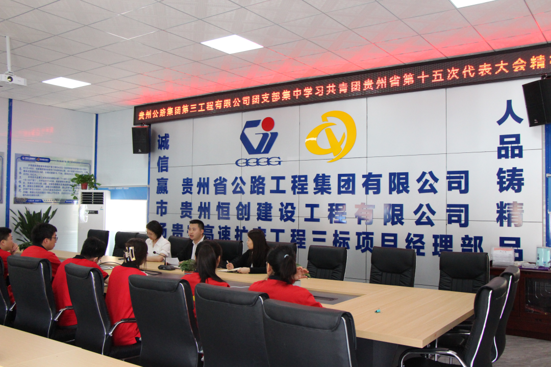 4月26日,共青团贵州省第十五次代表大会胜利召开,贵州XPJ集团团委实时组织司属各团支部在各工程公司本部及项目一线开展学习运动,重点转达学习了集会相关精神。