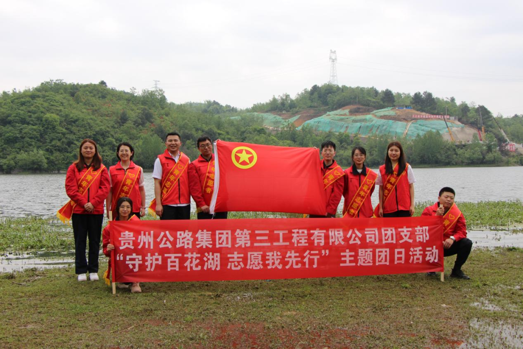 第三工程公司团支部组织开展2023年“守护百花湖 志愿我先行”主题团日运动。团员青年们来到贵安三标项目经理部四周的百花湖边,捡拾烟蒂、塑料袋、矿泉水瓶、放弃食品等垃圾,向司机、游客、外地居民等发放宣传册,宣传环保知识。