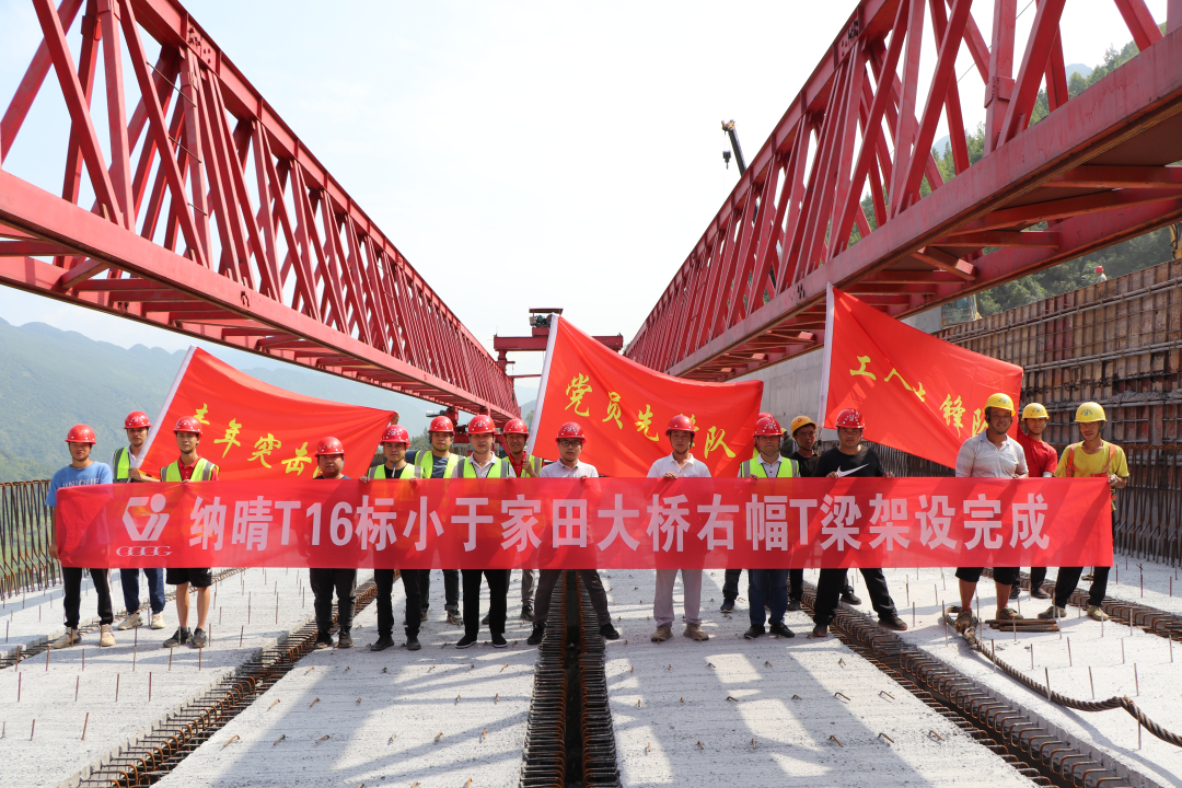 纳晴16标小于家田大桥T梁架设顺利推进