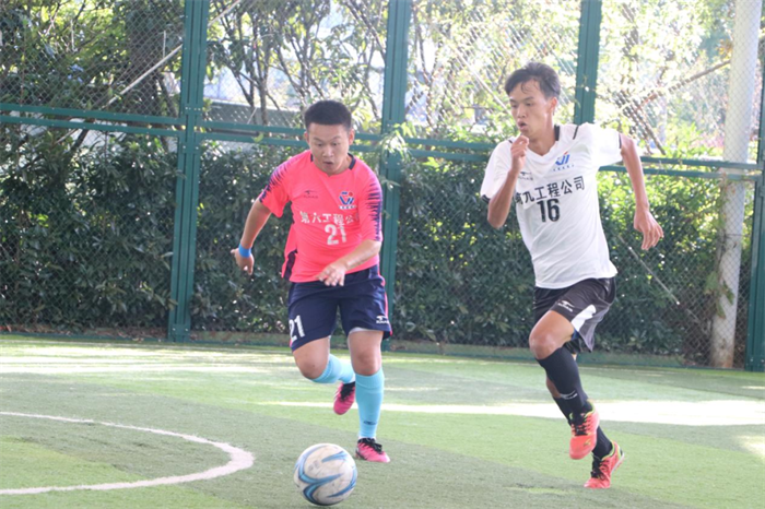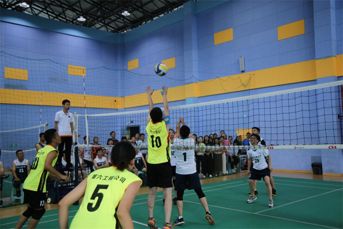 第一局开始,第九工程公司气势如虹,压制对方连得6分,一路领先到本局结束,比分定格在21:16。进入第二局后,双方球员互不相让,迅猛的发球、巧妙的拦网、精彩的扣杀,争夺猛烈,比分连续紧追。在最后一个赛点球时,第九工程公司代表队眼疾手快抓住时机再获1分,率先突破21分,以21:20赢得了第二局胜利。最终,第九工程公司以2:0战胜第八工程公司!