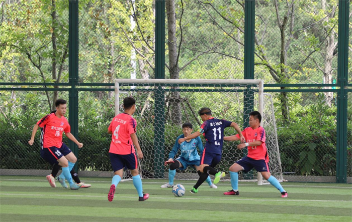 错失先机的第七工程公司不甘示弱,增强了中场的拼抢及战术配合,抢到球后突破阻碍顺利进球,终于突破僵局,扳回一城,信心大增。今后的角逐,双方队员你来我往,猛烈抢夺,比分交替上升。至角逐结束,比分定格在4:2,第六工程公司以2分优势战胜第七工程公司。