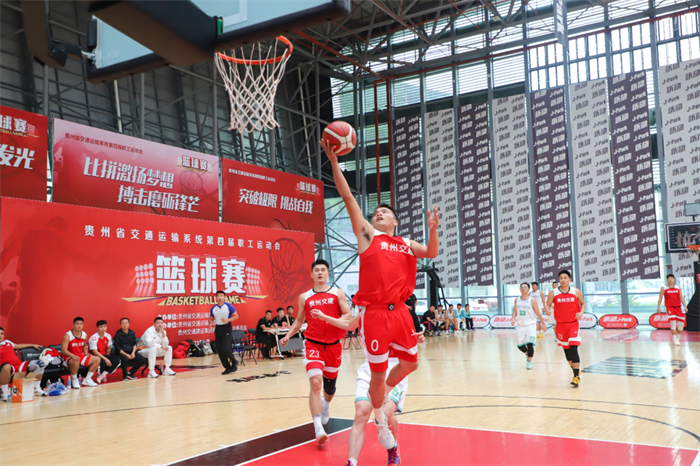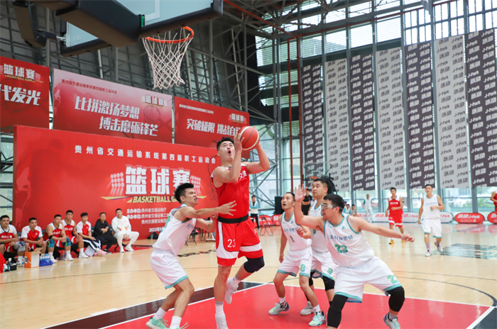 9月22日下午1点,贵州省交通运输系统第四届职工运动会篮球角逐八进四在贵阳市跃动J-park运动中心开赛,首场角逐在XPJ集团代表队和省XPJ开发集团代表队之间打响。上半场角逐中,XPJ集团代表队率先找到进攻节奏,通过防守还击快速进攻接连上篮得分,打出7:0的梦幻开局,到第一节结束,以27:19的比分领先。XPJ集团代表队接纳全场紧逼防守“1211”阵型,阵地半场防守盯人,在防守间不绝还击和快攻。双方你来我往,展开对攻大战,到上半场角逐结束,XPJ集团代表队以55:35的比分领先。