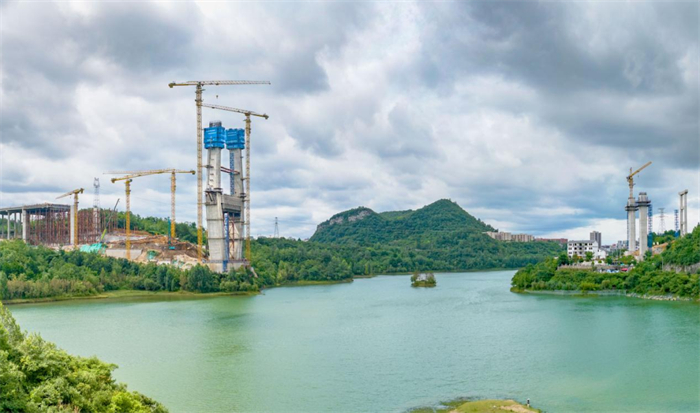 大桥接纳液压自动爬模、劲性骨架分块吊装施工技术,通过在下塔柱部位设置两道拉杆,中塔柱、上塔柱部位各设置4道撑杆,有效消除偏心受荷爆发的附加应力,确保大桥主塔的稳定性和线形精度。