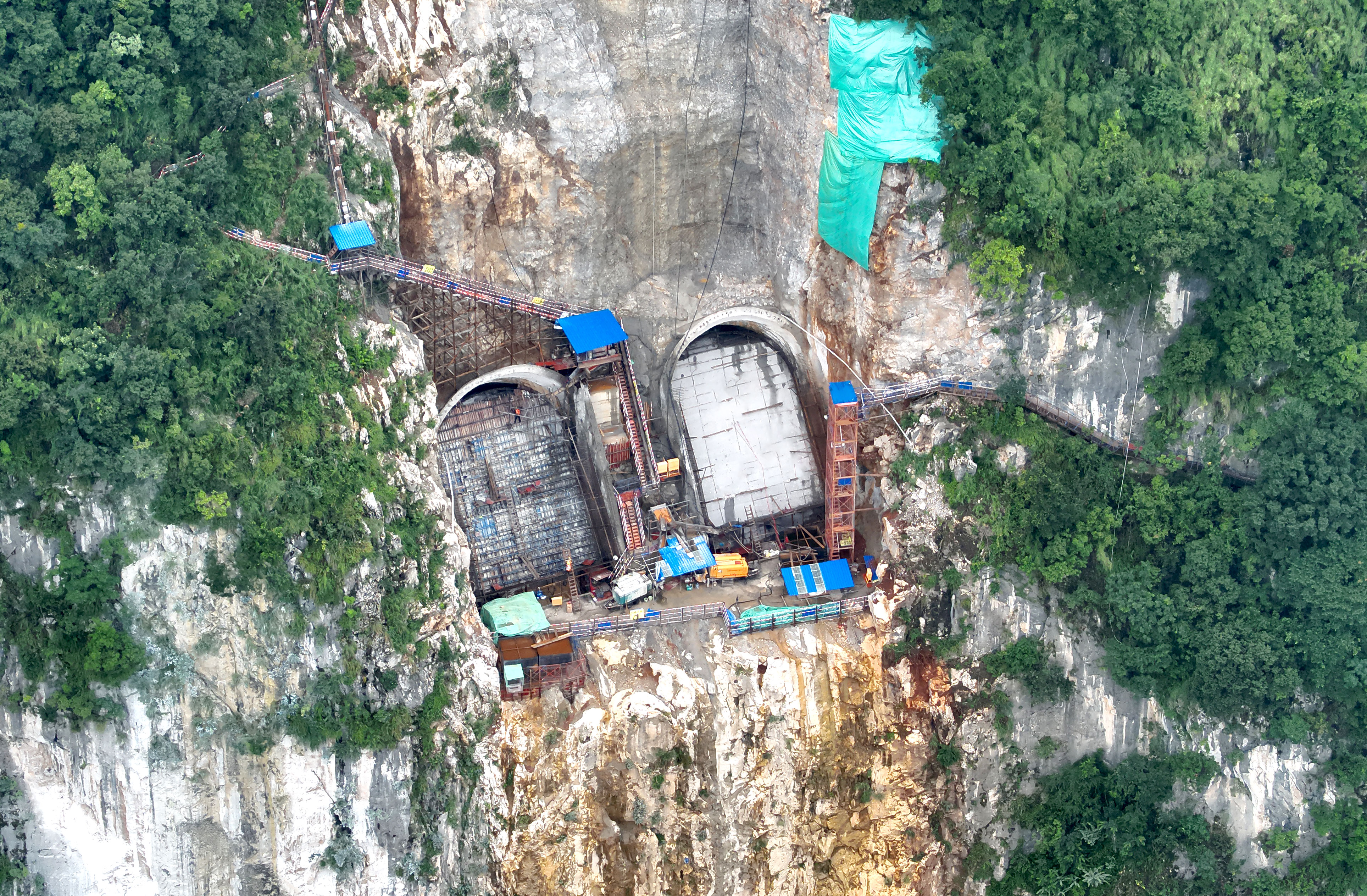 六车河大桥为安盘项目控制性工程,主桥为2×263.45米双联上承式钢管混凝土变截面桁架拱,是贵州高速XPJ首座双联钢管拱桥,桥面距离六车河峡谷笔直距离409米 。11号拱座位于六车河大峡谷的悬崖峭壁上,阵势险峻,项目建设面临设备物资进场难、施工技术要求高、宁静危害大等诸多挑战 。
