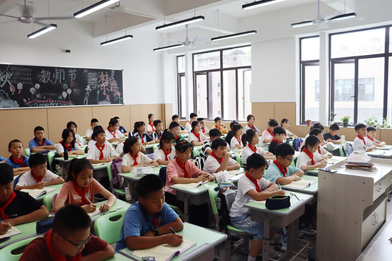 开学当天,新建成的教学楼、全新的多功效教室、崭新的桌椅让孩子和家长们眼前一亮。教学楼分为地下3层,地上4层,总建筑高度20.2米,总建筑面积17361平方米。其中,地上建筑面积6699平方米,地下室建筑面积10662平方米,共设18个班,新增1080个学位。除配备普通教室外,还设置了科学、美术、音乐、舞蹈、盘算机、书法、语言、劳动等多功效教室,为师生提供宽敞明亮的学习区域和便当的交流空间。