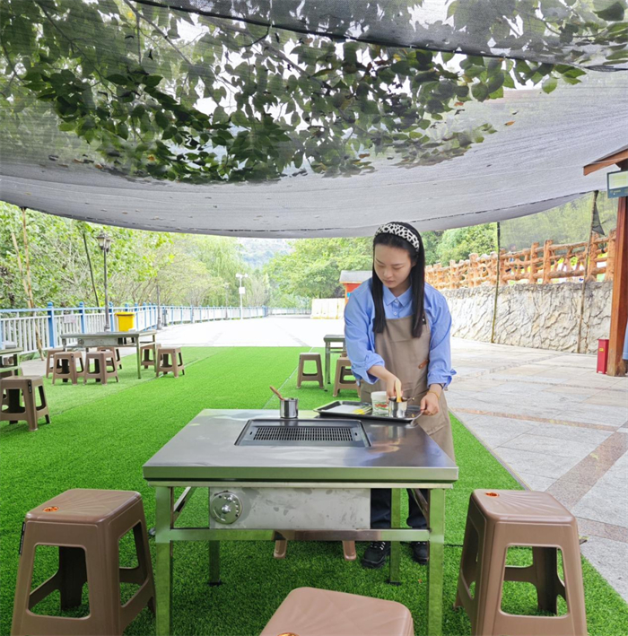 平日里我们是综合部和财务部的事情人员,假日期间我们摇身一变,化身为烧烤区的效劳人员与游船售票员,以满腔的热情与诚挚的笑容,效劳每一位游客。无论是在日常事情的岗位上,照旧在假日效劳的角色中,我们都在岗。