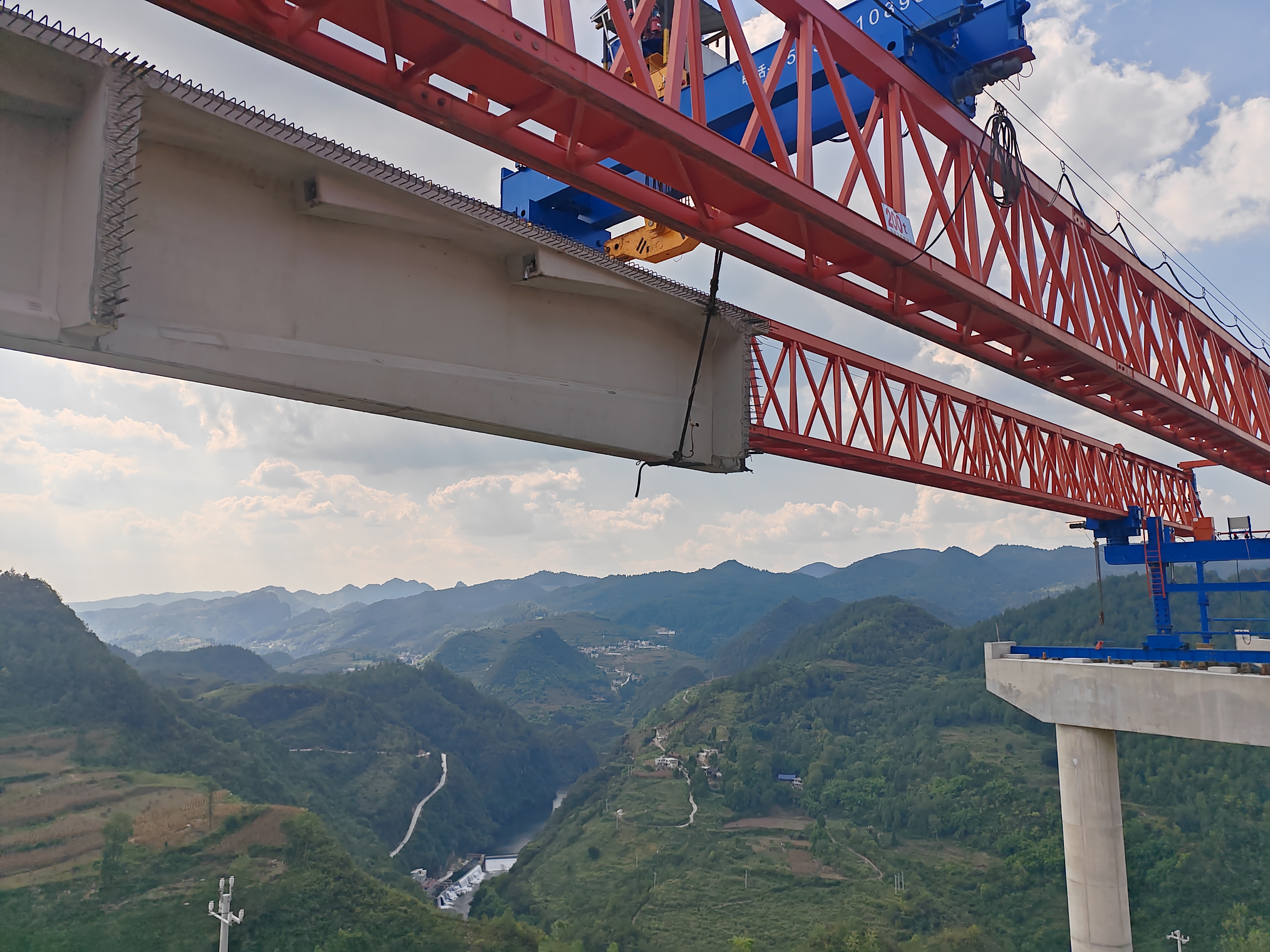 南明河大桥全长1129.8米,该桥共设有3个T构,共需架设196片40米预制T梁。