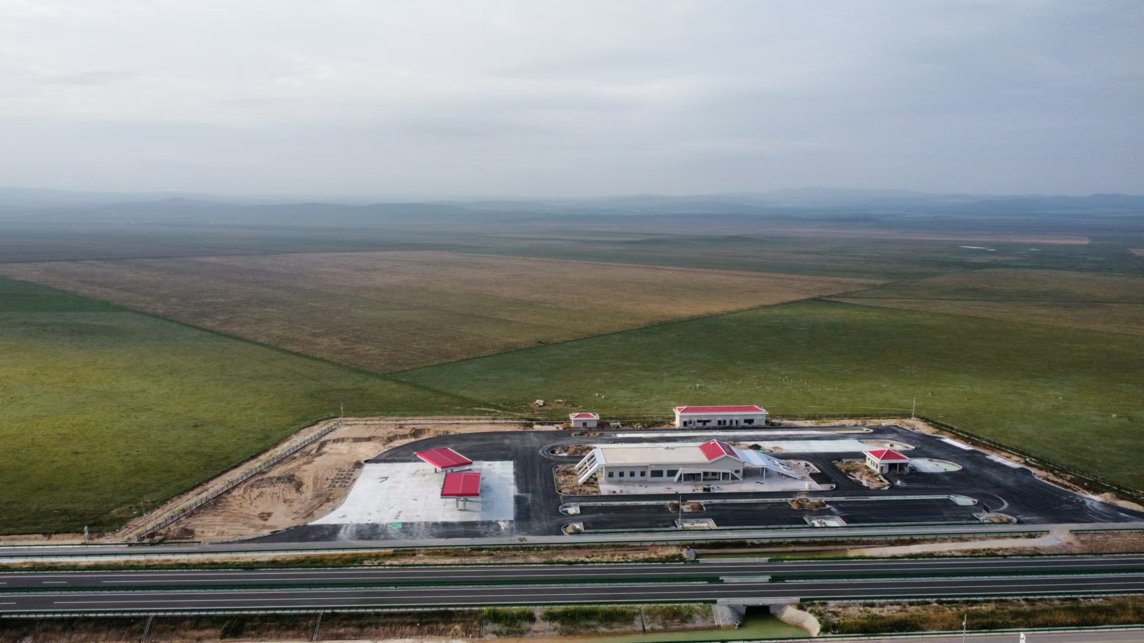 安公高速AGZCB-1房建项目建筑面积14105.24㎡,室外工程950709.30㎡,拆除工程298.33㎡,包括明安图收费站、星耀收费站、明安图效劳区南区、北区和原有建筑革新工程,先后于2022年6月8日和10月14日完成了全线房建工程的基础首件和主体首件工程。