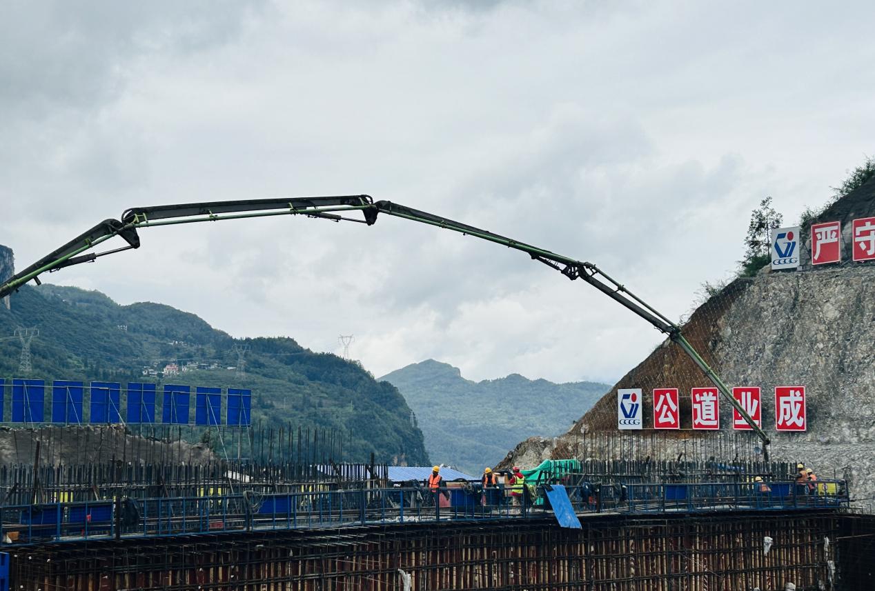近日,经过一线干部职工76小时的连续奋战,由贵州XPJ集团第三工程有限公司承建的安盘7标六车河大桥10号拱座完成第二次概略积混凝土浇筑。