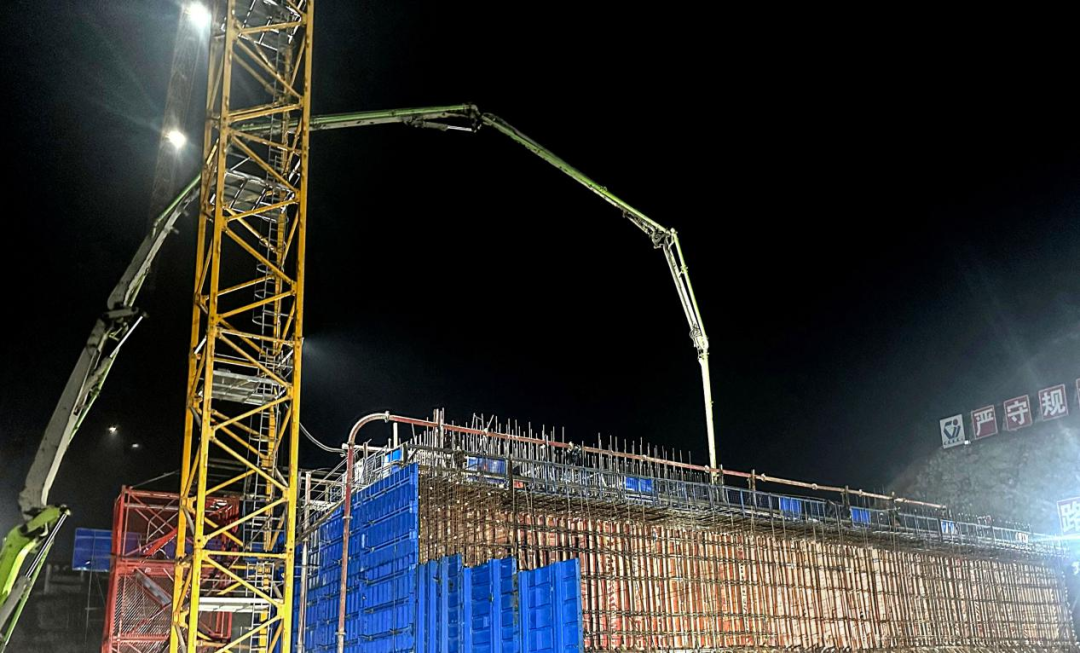 六车河大桥拱座概略积混凝土浇筑对人、机、料各个环节要求极高,为确保浇筑事情有序推进,项目团队建立专项事情小组,明确分工、厘清职责,以高度的责任感和强烈的使命感,严格凭据概略积混凝土浇筑施工要求,对混凝土入模温度、塌落度、下料振捣方法等环节进行严格把控,顺利完成了浇筑事情。