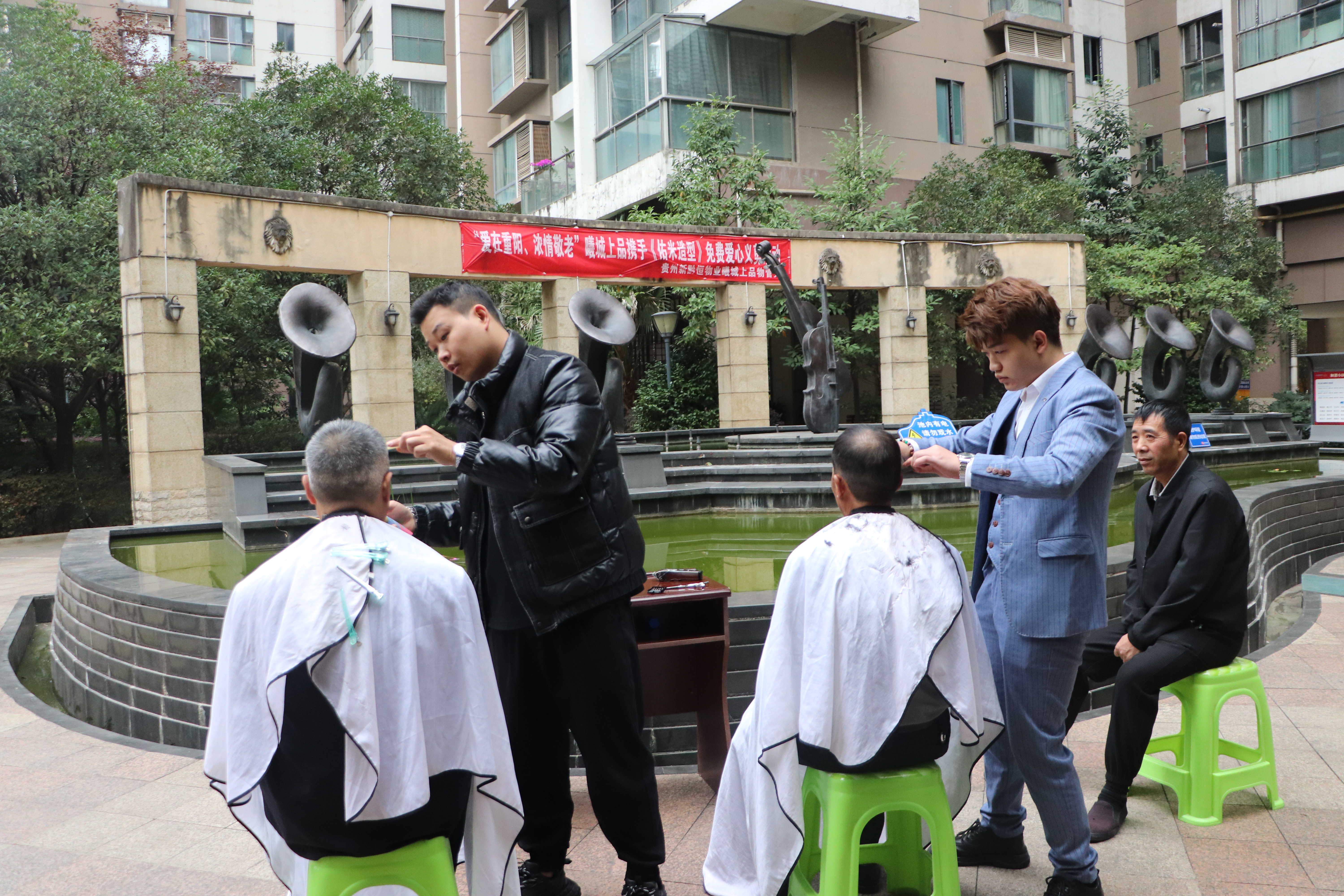 效劳从“头”开始,爱心从“头”出发。一大早,为老年业主免费理发运动就在小区花园处展开,公司邀请的理发师为老人细心系好围布,熟练地进行修剪。党员志愿者在一旁为业主送上暖心热茶,资助吹头发,扫除地面、清洁墙面等。