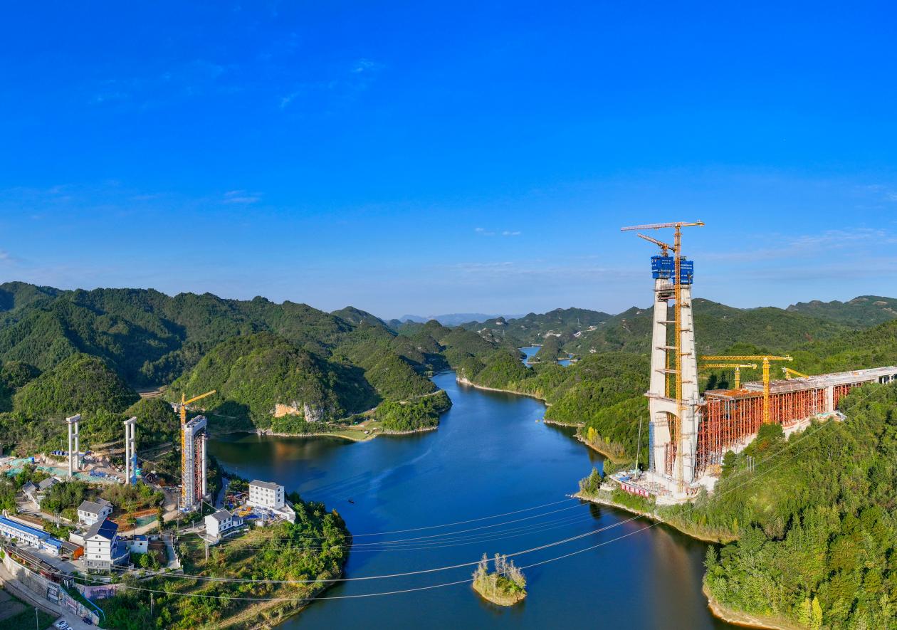 日前,由贵州XPJ集团第三工程有限公司承建的贵安扩容3标百花湖大桥11号主塔突破170米大关,项目建设取得新进展。