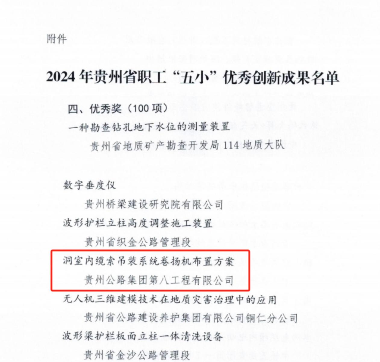 ½üÈÕ£¬¹óÖÝÊ¡×ܹ¤»á¡¢¹óÖÝÊ¡¿ÆÑ§¼¼Êõлᡢ¹óÖÝÊ¡ÖÊÁ¿Ð»áÁªºÏÐû²¼ÁË2024Äê¹óÖÝʡְ¹¤“ÎåС”ÓÅÐãÁ¢Òì½á¹ûÃûµ¥£¬ÓɹóÖÝXPJ¼¯Íŵڰ˹¤³ÌÓÐÏÞ¹«Ë¾É걨µÄ¡¶¶´ÊÒÄÚÀÂË÷µõװϵͳ¾íÑï»ú°²Åżƻ®¡·»ñµÃÓÅÐã½±¡£
