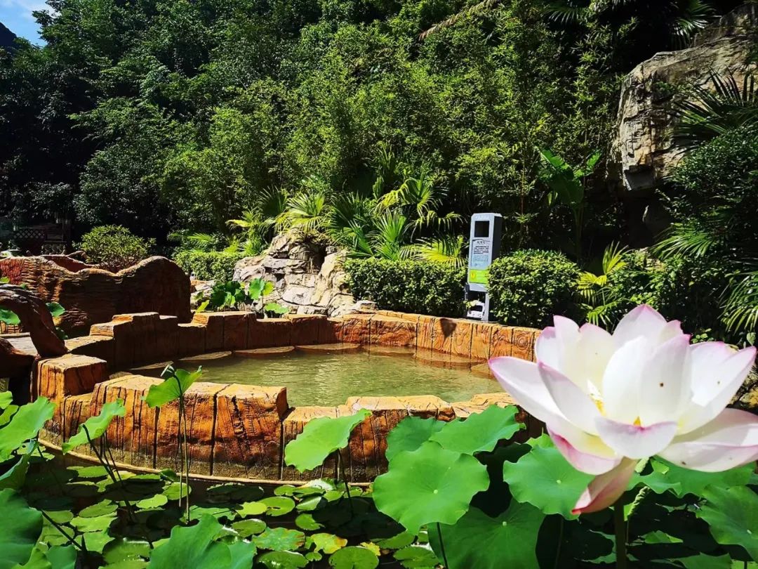 黔贵六广温泉依临六广河大峡谷,临江退台式平台之间以环形门路联通,每个泡池均能欣赏秀丽峡谷景物,共有形态、巨细、水温各异的特色室外泡池40余个。酒店庭院内情况平静优美,空气清新,舒适宜人,可观赏六广河美丽景物,是游客休闲度假的好去处。