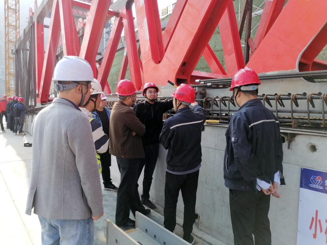 验收现场,验收组检验了制造成型的钢桁梁和钢桁架拼装的几何尺寸、线形、焊缝质量等情况,并对大桥钢桁架拼装后续施工提出指导意见。