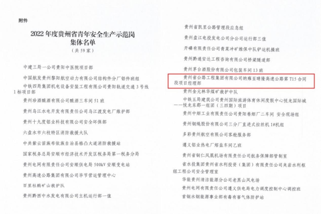 纳晴15标获2022年度“贵州省青年宁静生产示范岗”