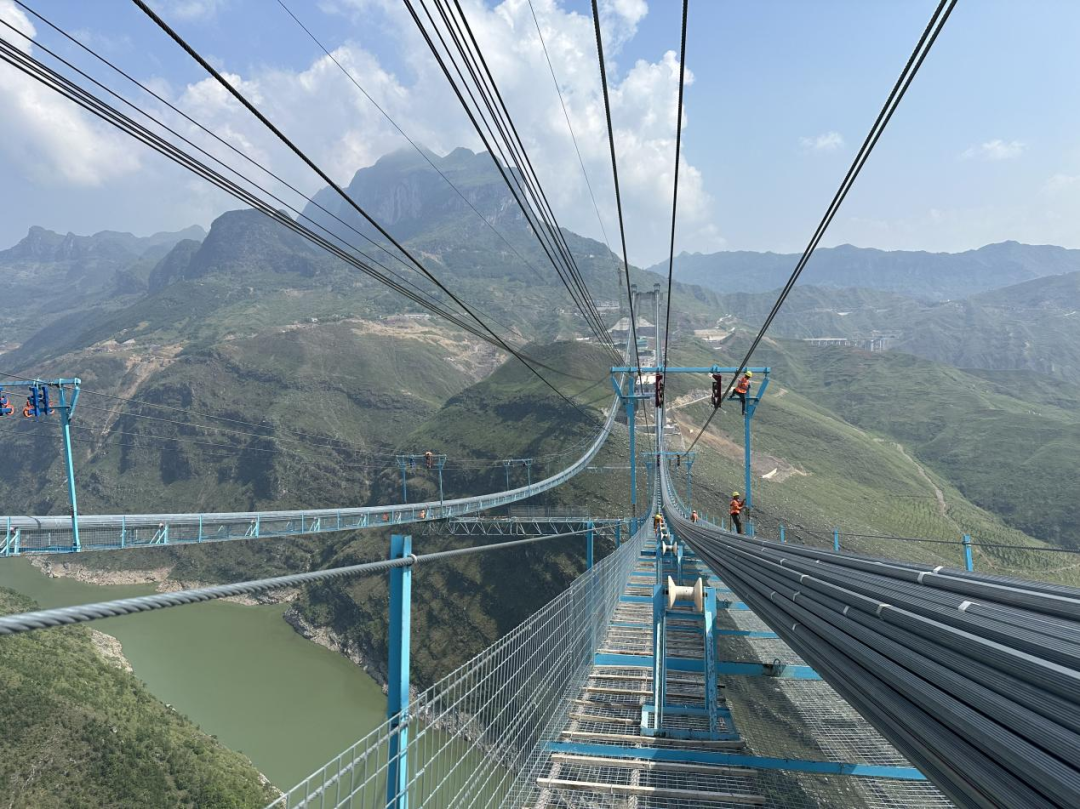 “纯贵州造”悬索桥!牂牁江大桥主缆索股牵引完成