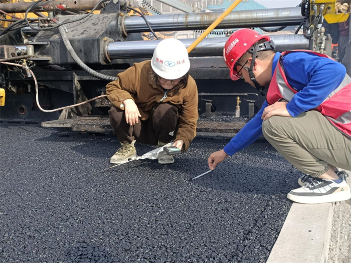 首件工程摊铺结束后,经现场技术员检测,该试验段平整度、压实度、厚度等技术系数均切合参数要求,为后续大规模展开沥青中面层施工提供了有力技术支撑。