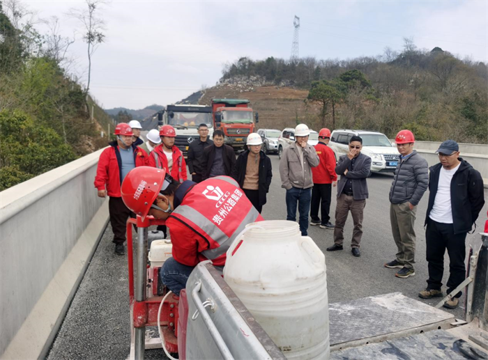 近日,贵州省交通建设工程质量监督执法支队到贵州XPJ集团第八工程公司承建的六安LM4标开展路面专项督查。