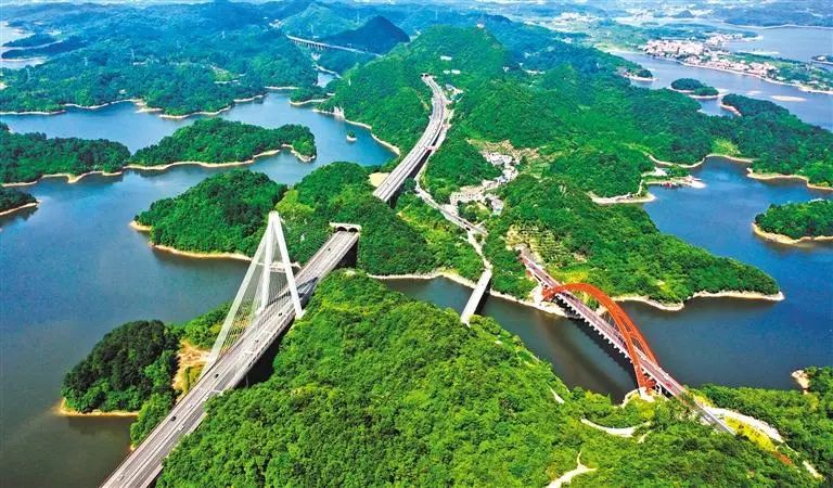 横跨在清镇市红枫湖上的三座桥,见证了贵州交通建设的生长。中间为建于1981年的老花鱼洞桥,左边为2004年竣工的沪昆高速红枫湖大桥,右边是2021年在一座老桥的基础上改建成的花鱼洞大桥。