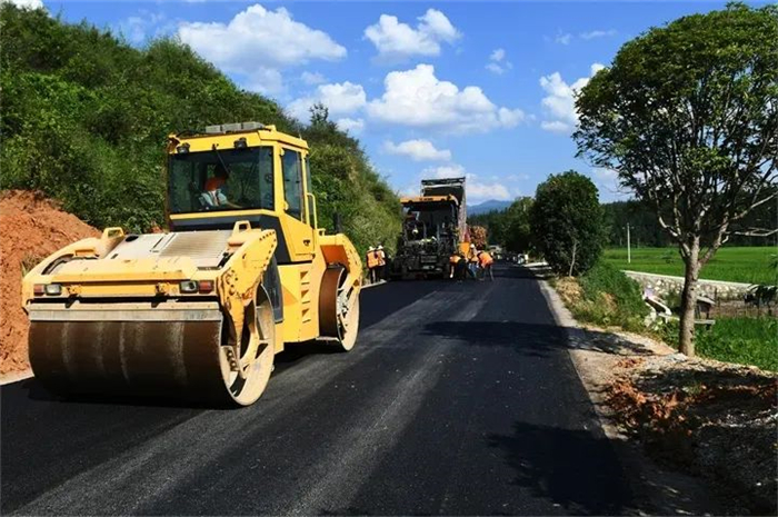 黔东南州锦屏县农村XPJ建设摊铺沥青。冯四方 摄