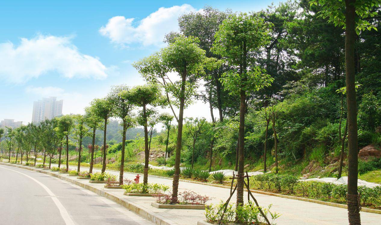 贵安新区中心大道门路工程门路品级为都会主干路,起点位于清镇市红枫湖中一村,终点接湖磊路,全长10km,计划红线宽度为100m。该门路绿化工程共分为3个标段,其中中心大道六标段(绿化工程),门路桩号为K...