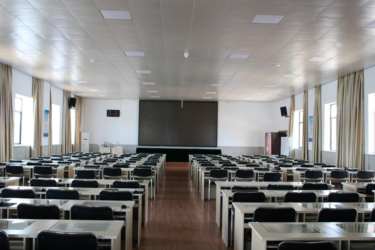 电教室面积450㎡,可容纳学员210人,配有独立光纤网络电脑200台,14㎡LED显示屏,教学音响一套,全笼罩的视频监控系统,智能人脸识别系统进入,适用于大型集会、种种治理人员培训考核。